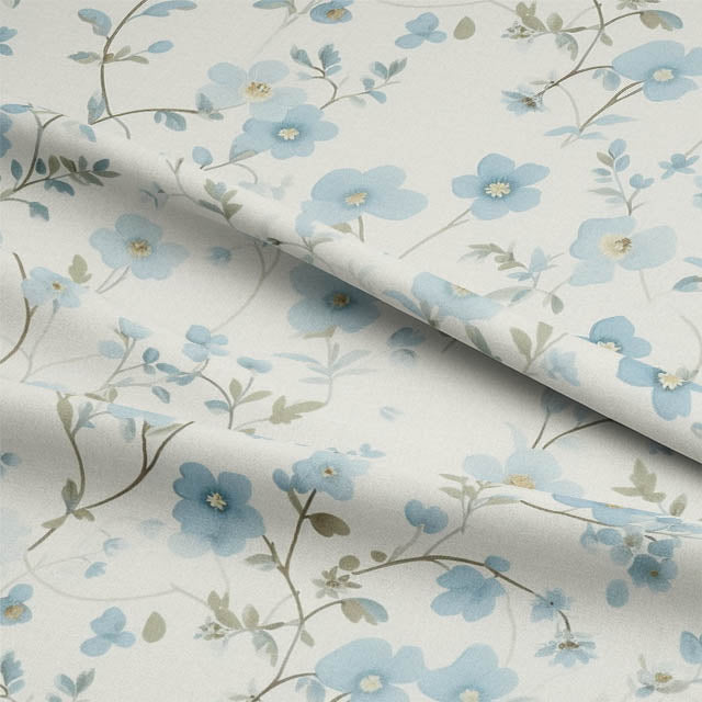Indulge in the captivating allure of our Blossoms Cotton Curtain Fabric in the serene Cornflower shade. This exquisite fabric features a delicate Thin Stem Floral design, effortlessly blending elegance and charm to elevate the beauty of your living spaces.