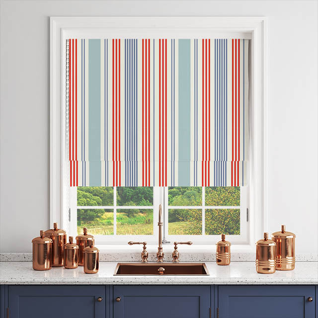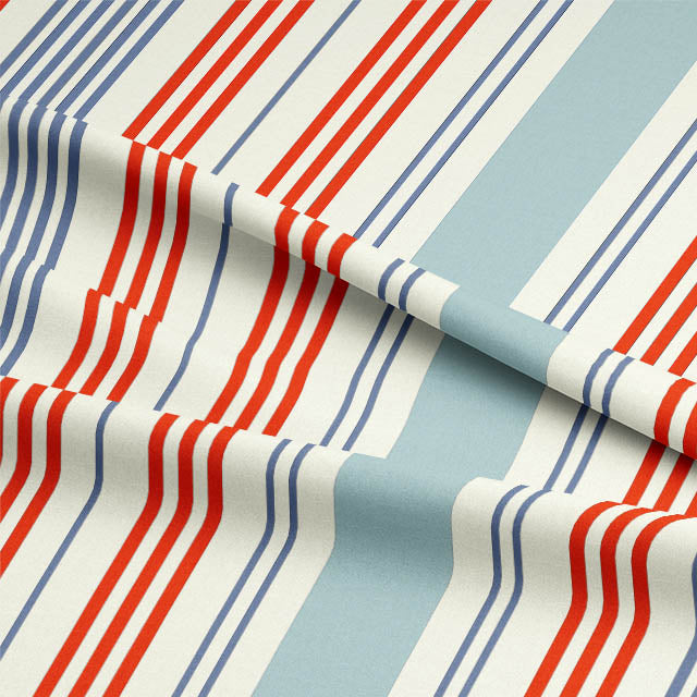 Boston Stripe Cotton Curtain Fabric - Red