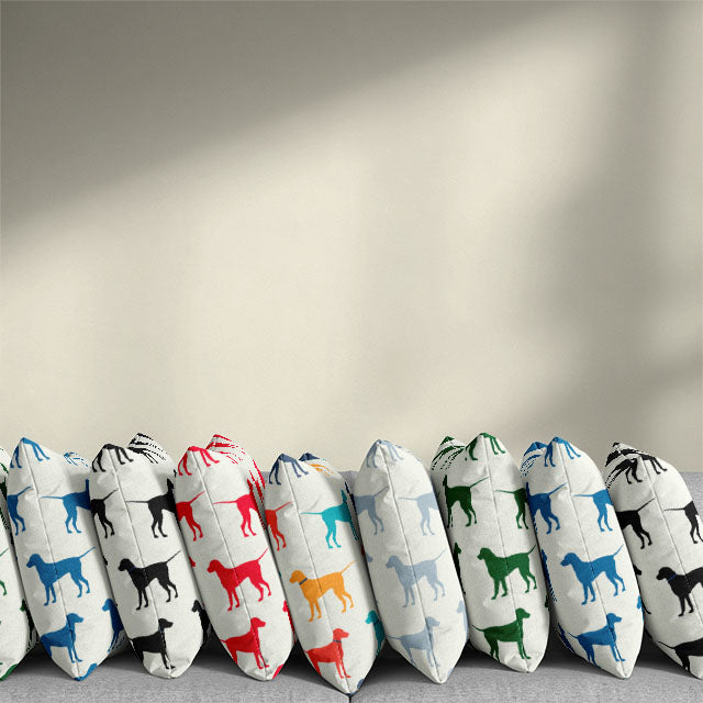 Unveiling the enchanting Cotton Curtain Fabric in an alluring Blue shade. This fabric carries a delightful, uncomplicated pattern of dog prints in various block colours, making it a versatile piece for your home decor needs! It's perfect for anything from curtains, blinds, cushions, to even light upholstery.