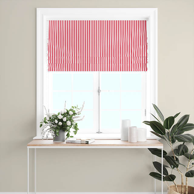 Introducing a delightful addition to our range of printed fabrics, featuring a strikingly uniformed block of colour in the form of playful stripes. Fashioned in an appealing scarlet hue, this fabric offers a bold, vibrant touch to any space. The versatility of this fabric is one of its greatest strengths, with an extensive colour range available to suit every taste and style.