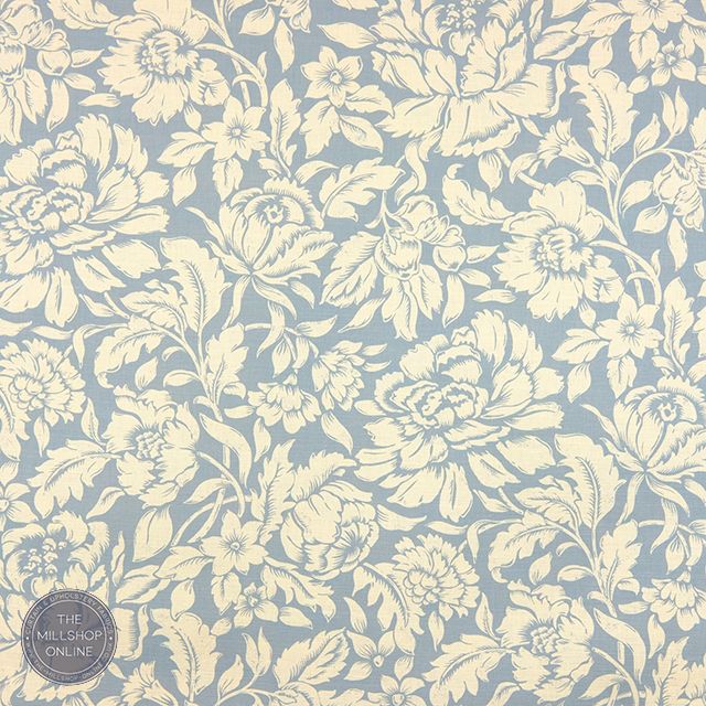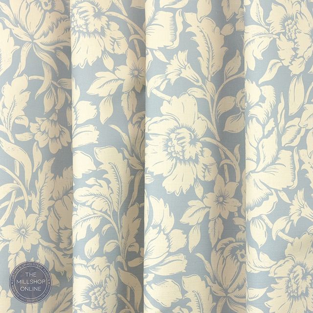 Dive into an elegant world of design with this splendid cotton print fabric, exclusively available at the-millshop-online. This luxurious fabric boasts beautiful floral motifs, gracefully embedded on an appealing blue backdrop, making it a perfect choice for eye-catching curtains or sophisticated roman blinds.