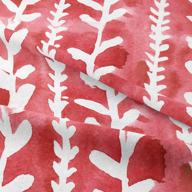 Immerse your interior decor in the captivating charm of this red cotton fabric. It pays homage to Nordic simplicity, with a design that breathes new life into your home. Its watercolour-inspired palette combines beautifully with the gentle trails of budding fauna, creating an atmosphere that's both uncluttered and refreshing.