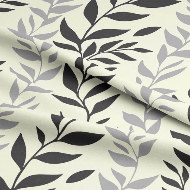 Transform your home decor with our stunning Foliage Cotton Curtain Fabric in the timeless shade of black. This fabric boasts a chic off-white cotton background adorned with sleek vertical stems and striking black and grey leaves, adding a touch of sophistication to any space.