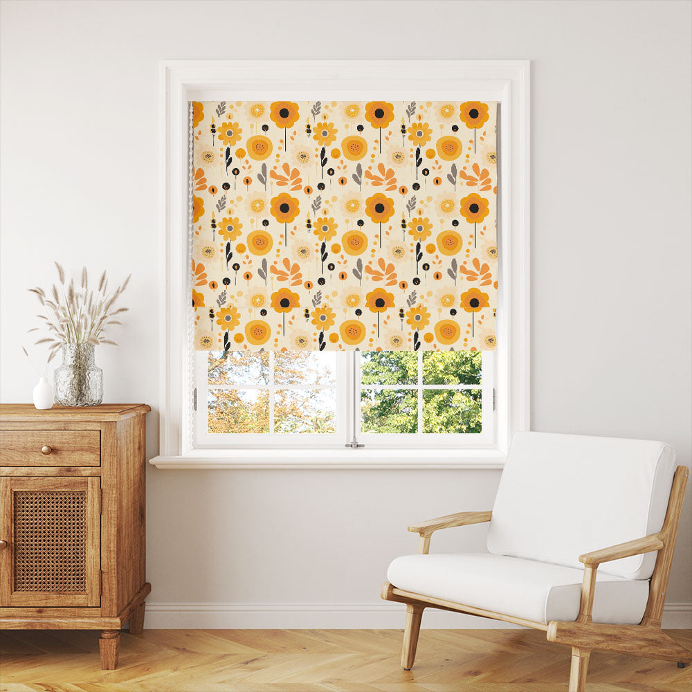 Folk Daisy Cotton Curtain Fabric - Mustard