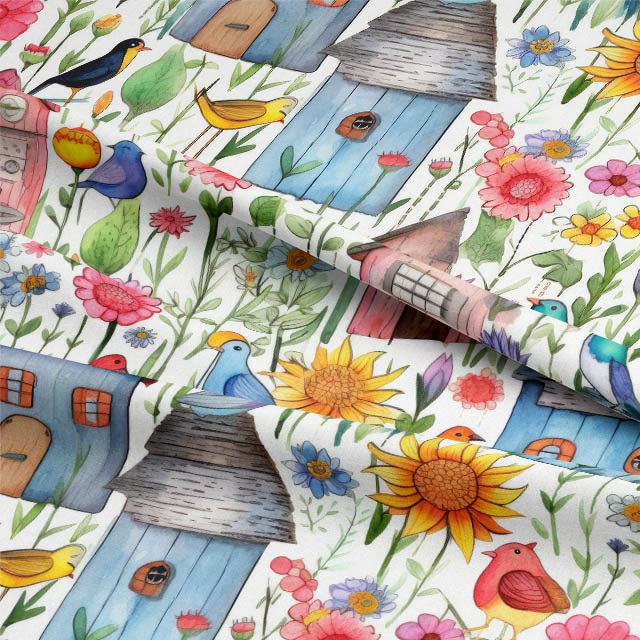 Bring joyful charm into your interiors with our Folk House Linen Curtain Fabric in Multi. This lively design features whimsical painted houses, fluttering birds, and a riot of multicoloured blooms on a crisp white ground – perfect for creating an uplifting, imaginative space. Ideal for children’s bedrooms, playrooms or creative family rooms, it adds a bright pop of colour and a playful, illustrative quality to your curtains and blinds.