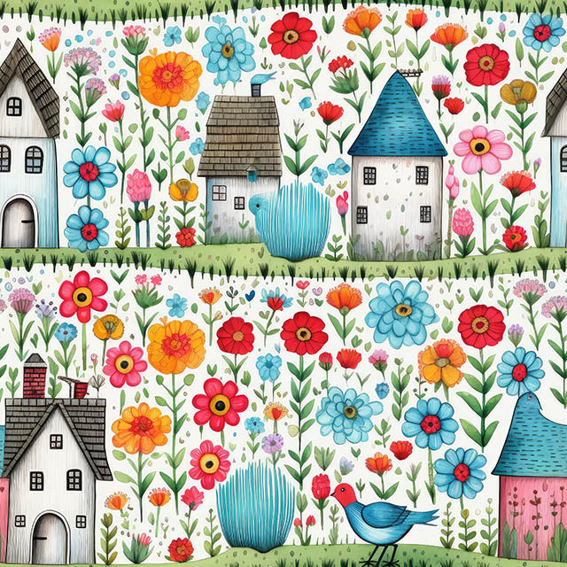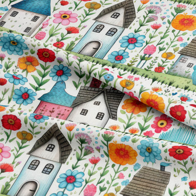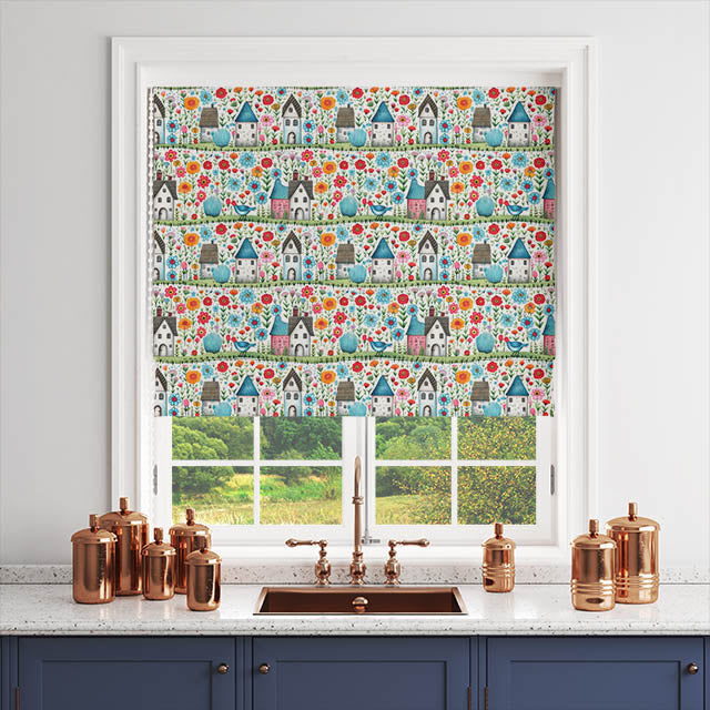 Infuse your interiors with charm and creativity using our Folk House Linen Curtain Fabric in White. This delightful design features rows of hand-drawn houses, cheerful birds, and colourful blooms in a lively, illustrative style—perfect for playful, family-friendly spaces.