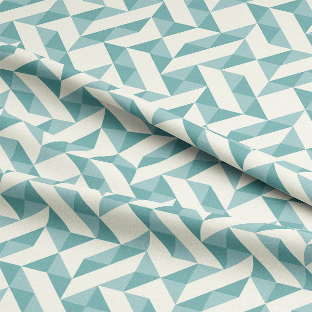 Bring a contemporary uplift to your home with our exquisite cotton fabric, made from a 100% cotton. The underlying white base cloth provides a stunning contrast against the vibrant teal green geometric pattern, serving as an instant eye-catcher in any room setting. This distinctive design infuses an energetic burst of colour, propelling a hint of modernity into the confined spaces of your dwelling.