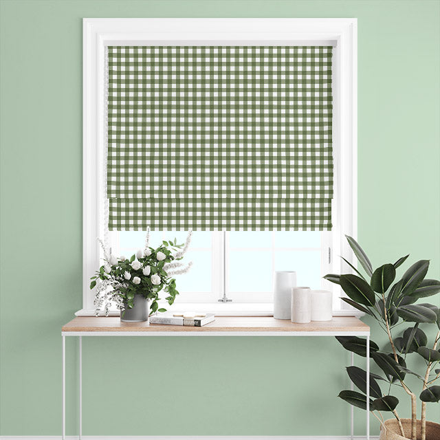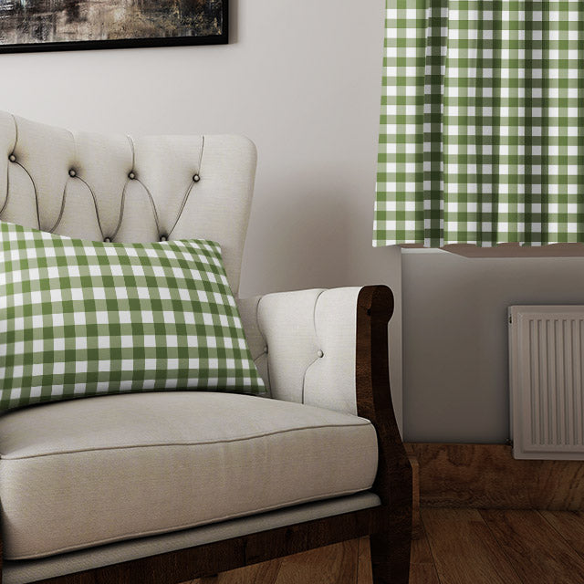 Gingham Check Cotton Curtain Fabric - Green