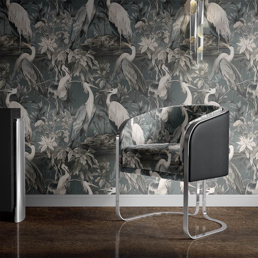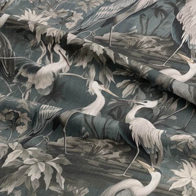 Transform your furniture with this durable and stylish linen upholstery fabric, designed to withstand everyday use while maintaining its beauty. Elevate your home decor with the timeless allure of heron birds, showcased in intricate detail on this fabric.