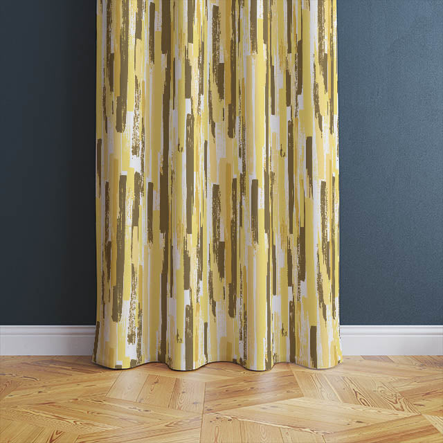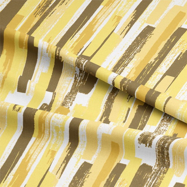 Unleash a wave of modern elegance into your space with our premium cotton fabric. This stunning material, with a distressed striped pattern in a vibrant spectrum of yellows, encapsulates the spirit of modernism in every strand.