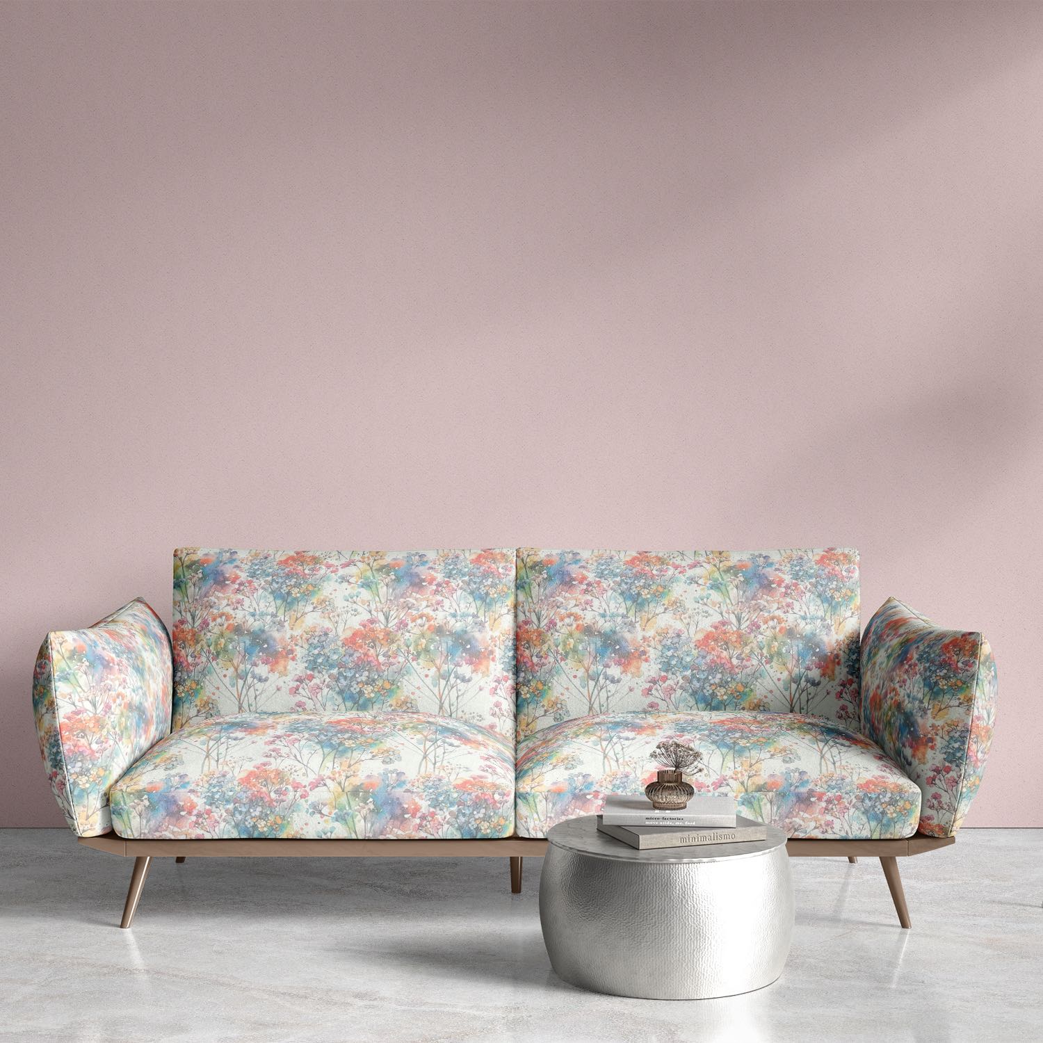 The fabric presents a delightful orchestration of lively floral arrangements where each blossom exudes vitality, imbuing your space with a natural allure. From the bold colours to the intricate detailing, it's a fabric that steals the spotlight in any room it graces.