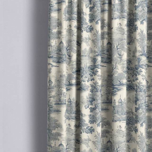 Rennes Toile Linen Curtain Fabric - Blue