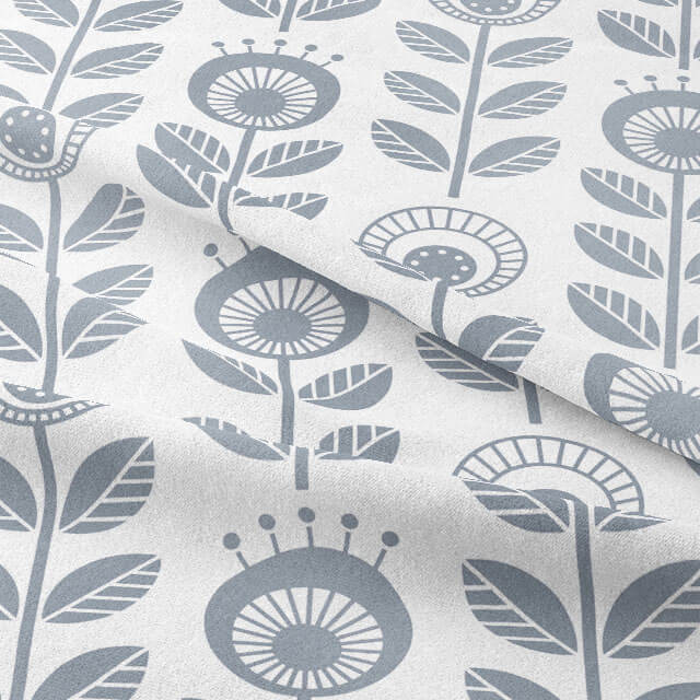 Discover the elegance of our unique fabric, an exquisite blend of design and practicality. It's an eye-catching floral pattern, inspired by Orla Kiely, perfectly complements a sharp white backdrop, creating a contemporary and chic ambience in any room.