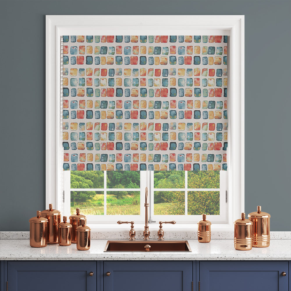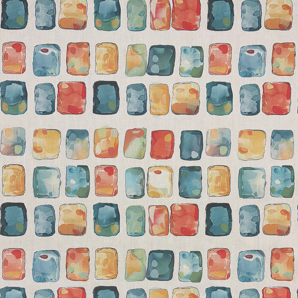 Soho Multi is a statement multicoloured curtain fabric that blends bold geometric forms with artistic brushstrokes. The design features layered, hand-drawn square motifs in a dynamic mix of warm reds, deep blues, mustard yellows, and rich greens. The slightly textured effect adds movement and depth, making this fabric a standout choice for modern and contemporary interiors.
