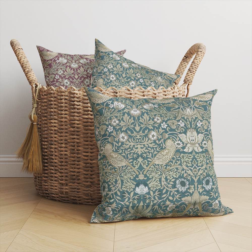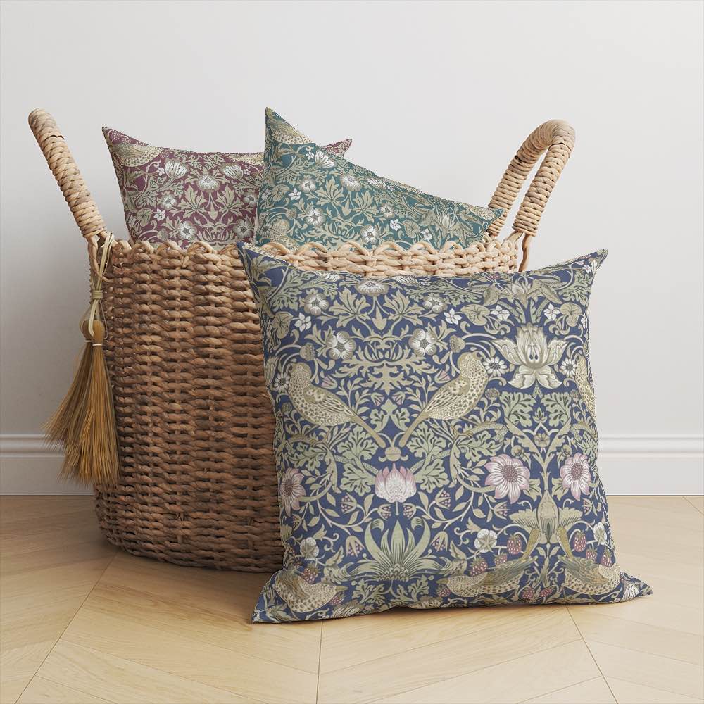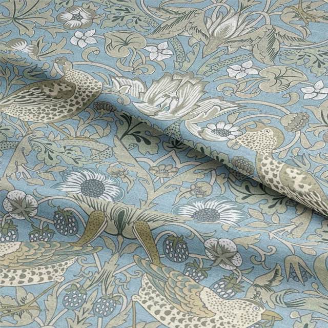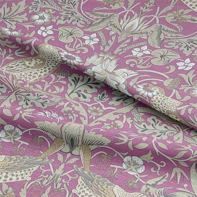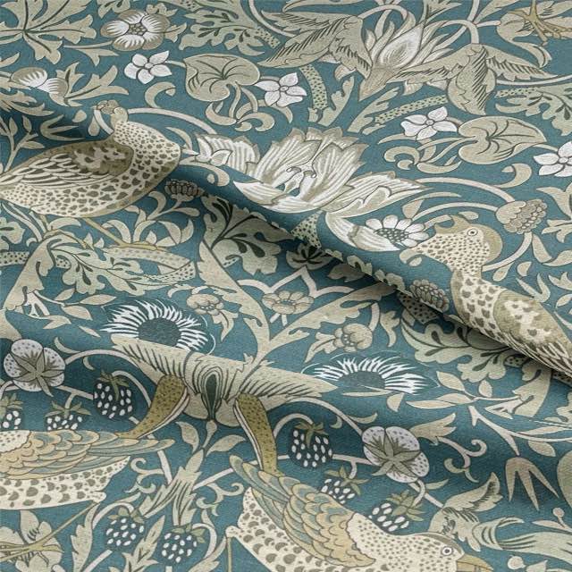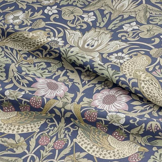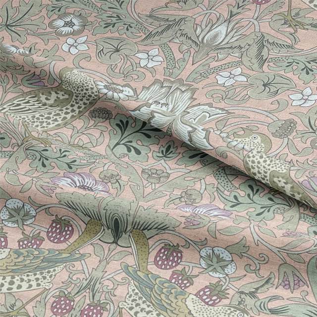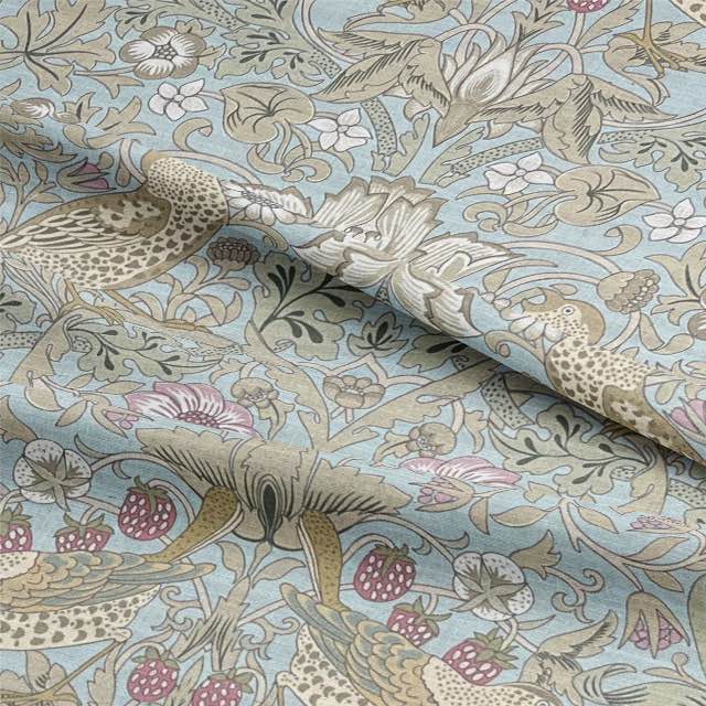 Our fabric takes its design cues from William Morris' enduring opus, Strawberry Thief, mirroring the delicately woven interplay of flowers and birds, truly embodying the timeless beauty of Morris' aesthetic philosophy.