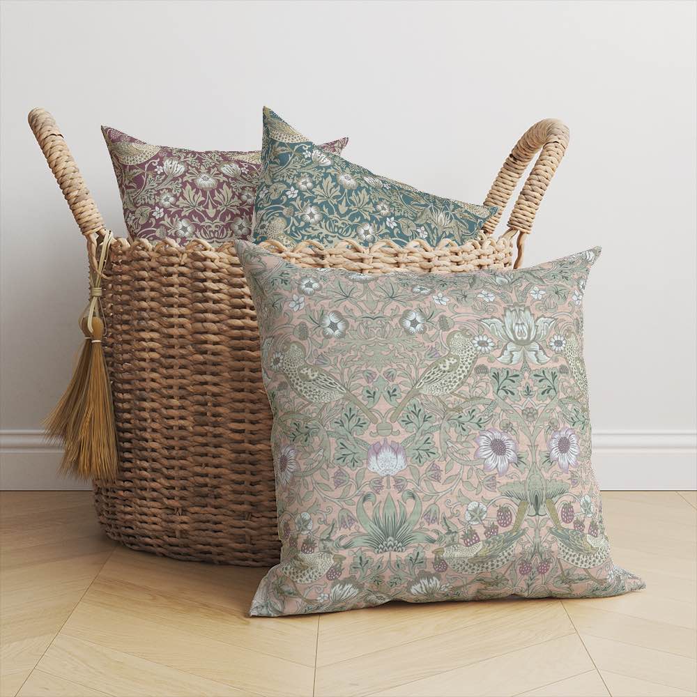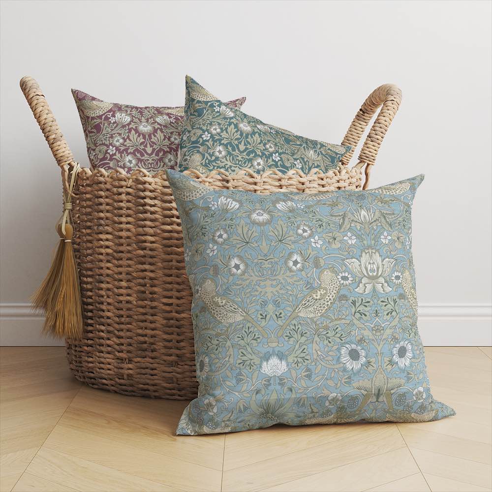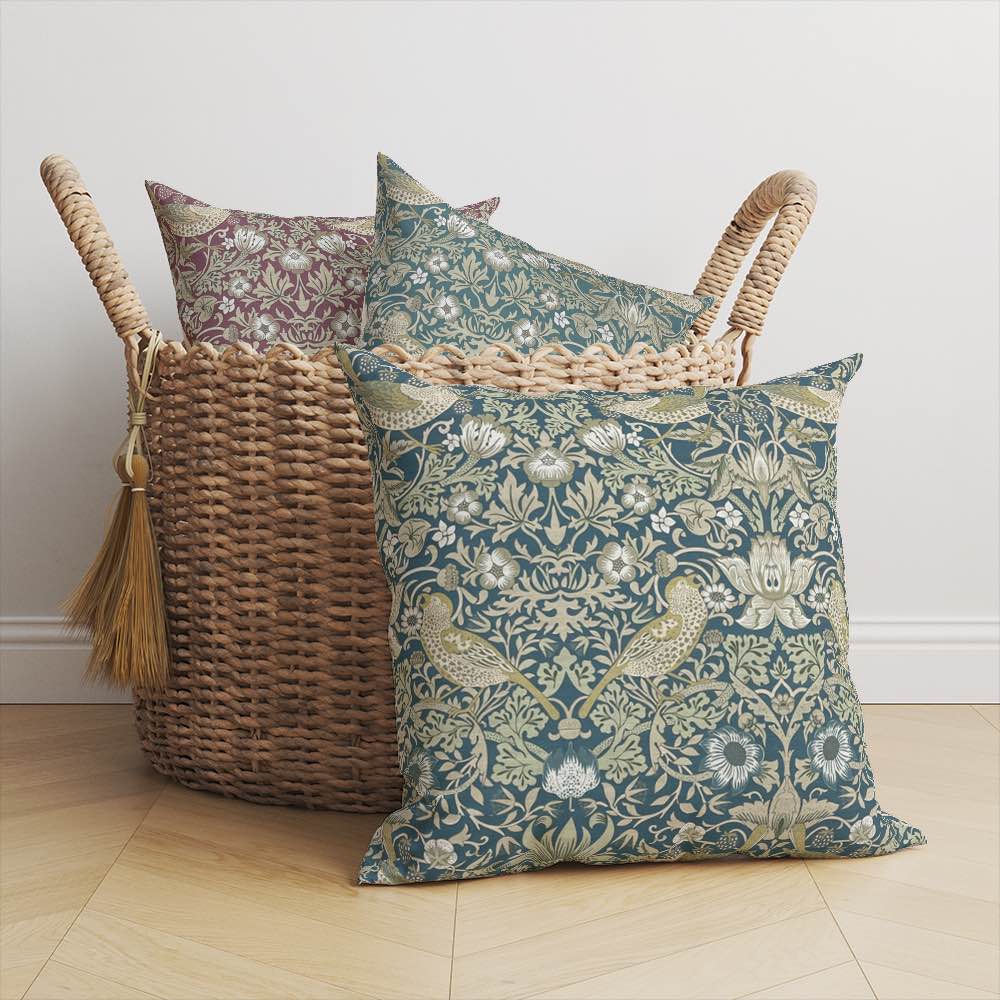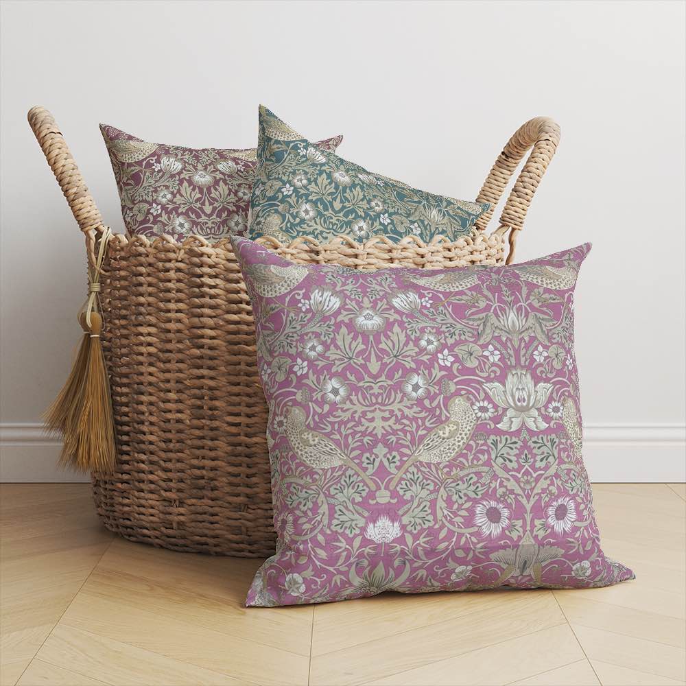 Our fabric takes its design cues from William Morris' enduring opus, Strawberry Thief, mirroring the delicately woven interplay of flowers and birds, truly embodying the timeless beauty of Morris' aesthetic philosophy.