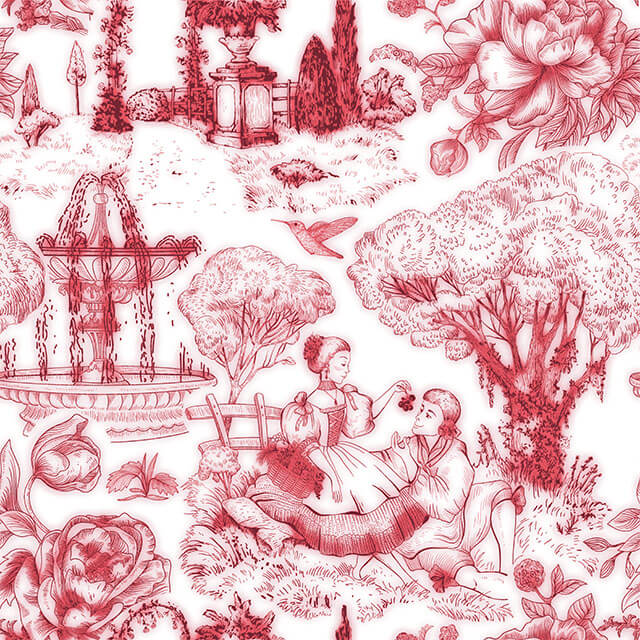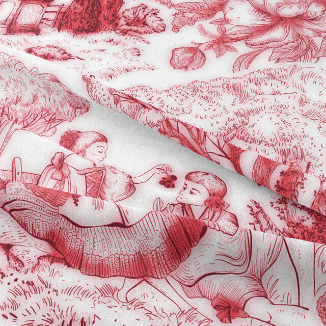 Auvergne Toile De Jouy Fabric - Red