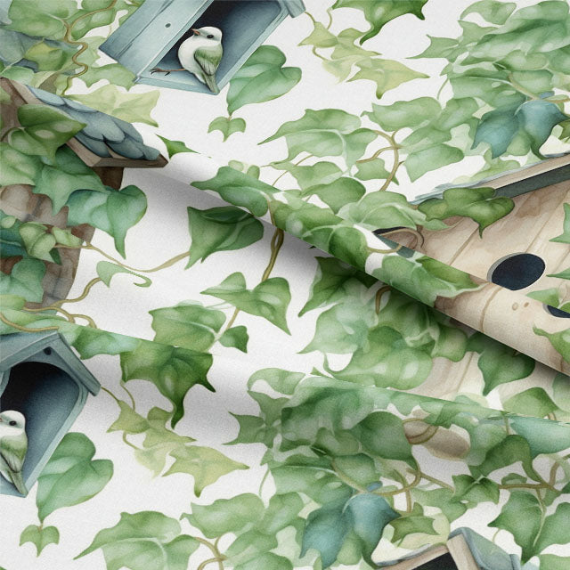 Transform your home into a serene oasis of style with our fabric, evoking the beauty of nature and the delightful charm of birds and birdboxes.