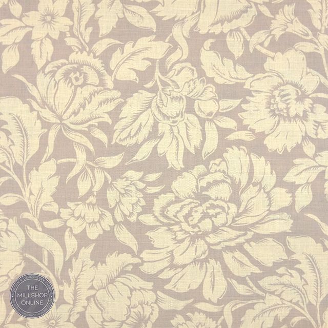 Transform your living space with this exquisite cotton print fabric featuring a stunning floral design on a chic dove grey background. Elevate your interior décor with statement curtains or roman blinds made from this luxurious fabric.