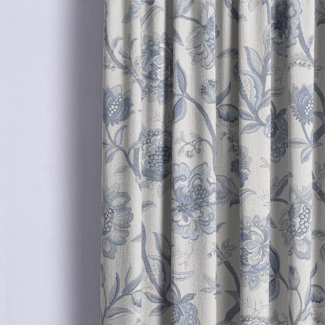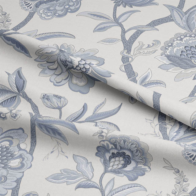 Exclusive at the-millshop-online: a touch of timeless elegance with a hint of vintage charm. Discover our beautifully crafted fabric, showcasing a soft, faded aesthetic blended with a striking blue Jacobean floral pattern.
