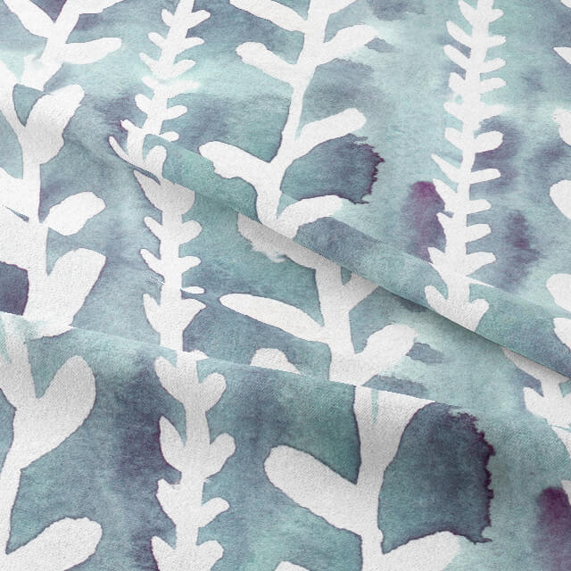Bring home the soothing allure of the ocean with our beautiful cotton fabric. With a design drawn from the simplicity of Scandinavia, this fabric delivers an enchanting fusion of minimalist aesthetics and organic design elements. It paints a vivid picture of sprawling fauna and budding blossoms, all set against a vibrant watercolour palette that mirrors the mesmerising depths of the sea.