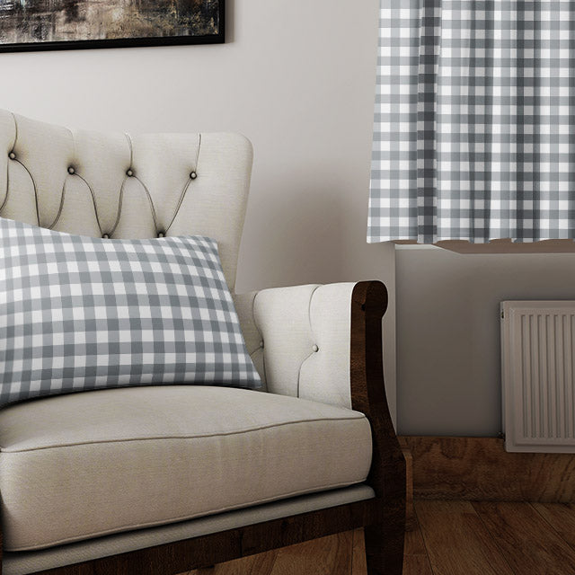 Experience the charm of a country home with our delightful check fabric, set on a pristine white cotton basecloth. This classic design is perfect for infusing a touch of colour into your interior décor without overpowering it. Picture a pair of gorgeous curtains or a chic roman blind made out of this fabric adorning your window.
