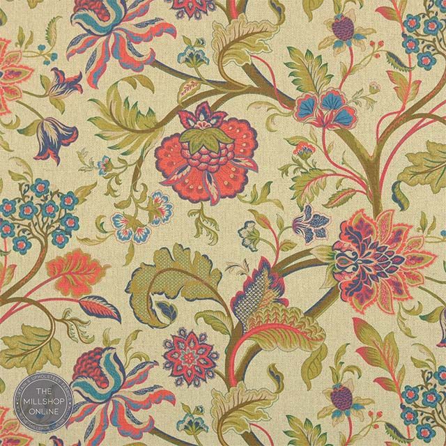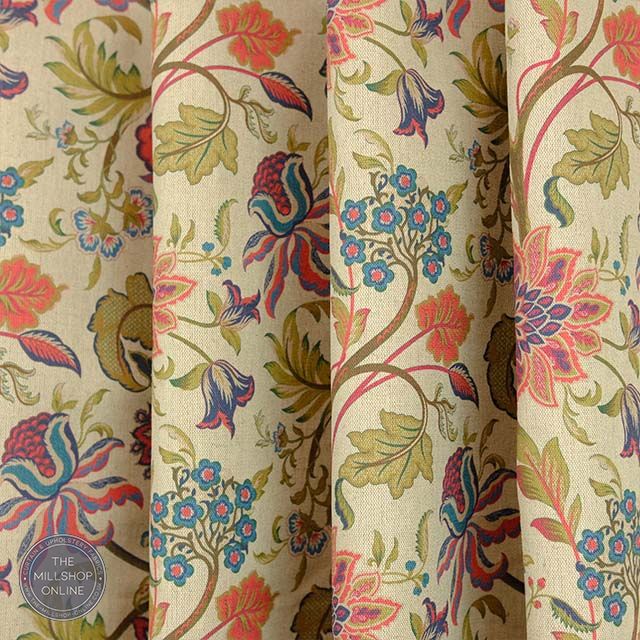 Discover the exclusive allure of our exquisite linen print fabric, exclusively available at the-millshop-online. Imbued with captivating floral designs, this fabric is printed on a 100% linen base cloth, exuding a natural charm that breathes life into your living space.