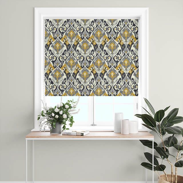 The bold, unique design of this fabric makes a dramatic statement whether used for elegant curtains, stylish roman blinds or tasteful cushions. The warm ochre tones add a modern, vibrant touch to any room, transforming it into a chic, comfortable haven.
