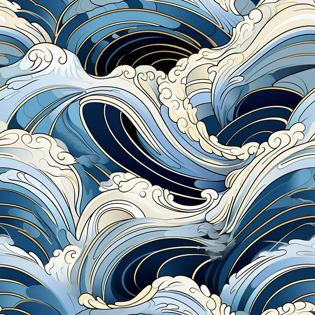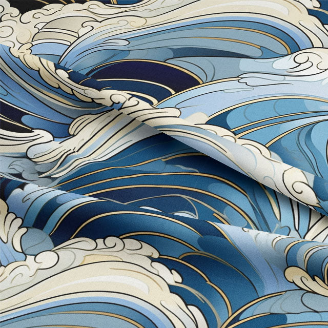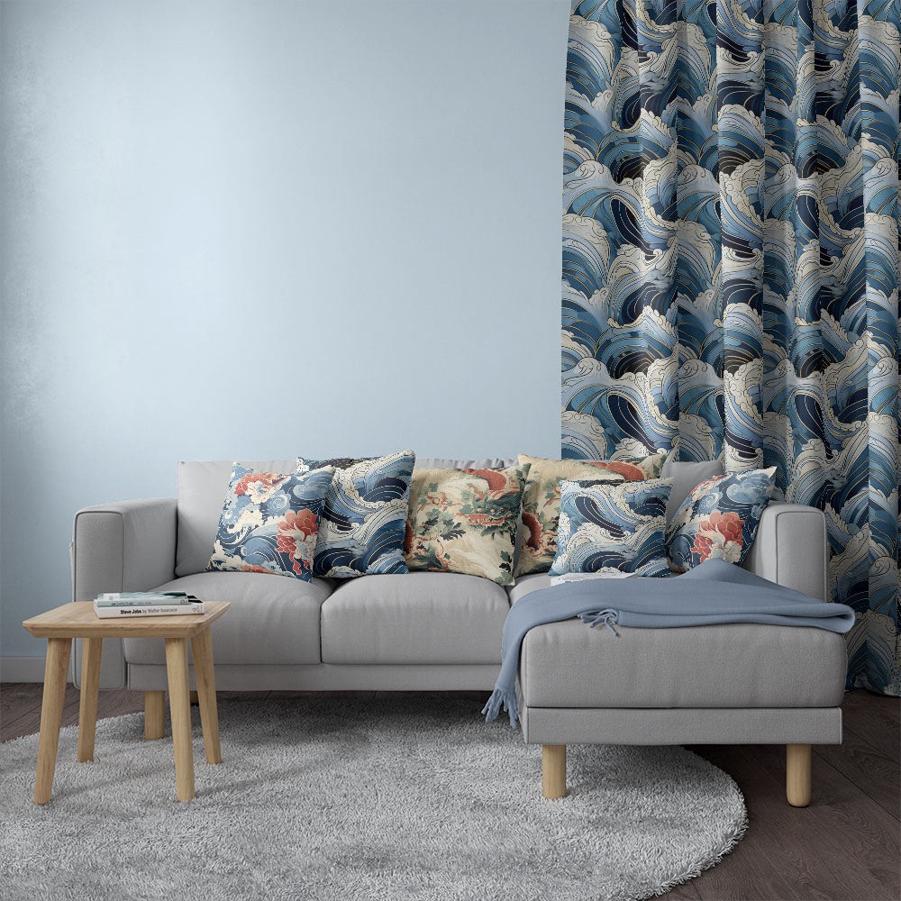 Enhance your interiors with the elegant Japanese Waves Linen Curtain Fabric in a classic blue colourway. This 20m wholesale fabric roll features a traditional Japanese wave design, printed on high-quality linen, ideal for creating stunning curtains. The intricate wave pattern brings a serene, timeless touch to any room, combining beauty with the natural texture of linen fabric.
