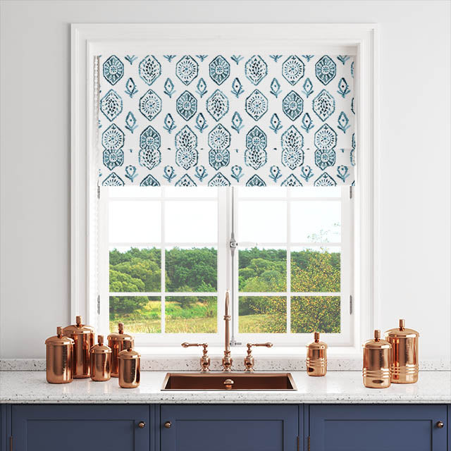 Invite a hint of Moroccan charm into your living space with our exquisite fabric. Bathed in serene shades of blue, this fabric is perfect for creating curtains and blinds that will seamlessly blend with diverse interior styles. It features a delicate and traditional Moroccan pattern that promises to infuse your home with an authentic design element.