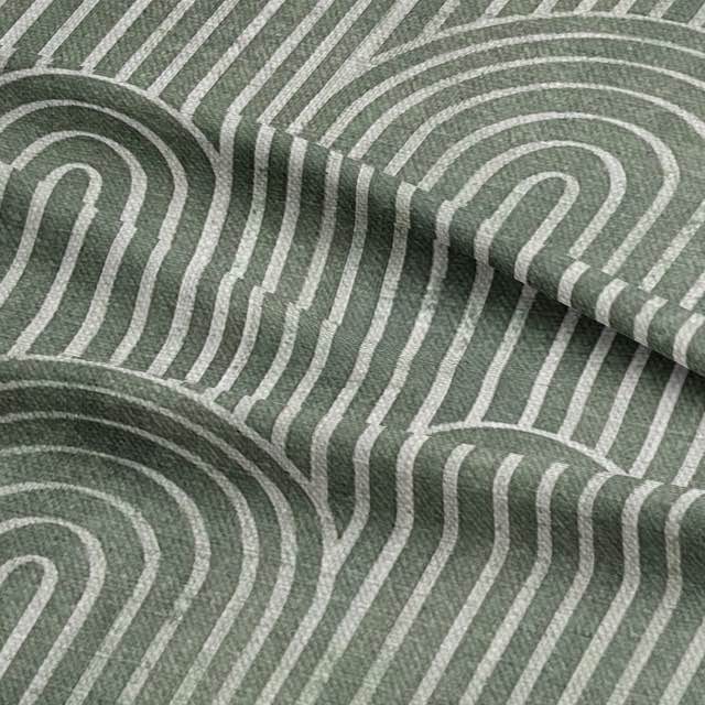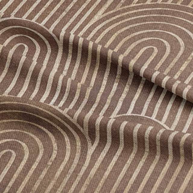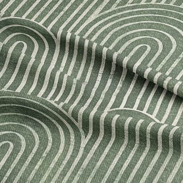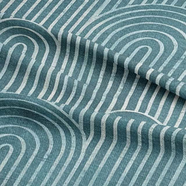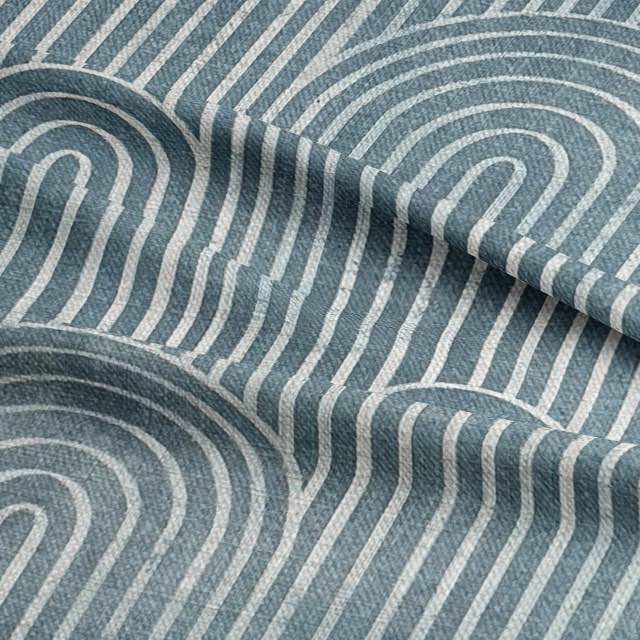 Discover the blend of traditional Art Deco allure and contemporary grace with our new fabric creation. Our fabric presents an intriguing pattern of arches, meticulously designed on a linen base cloth, to infuse your interiors with an enduring charm.