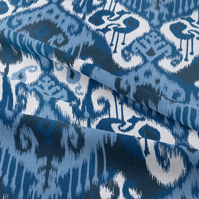 Experience a striking blend of style and quality with this exclusive fabric from The Millshop Online. This fabric displays an eye-catching Ikat design, crafted with an inspirational palette of bold blues. Drawing inspiration from the Indonesian technique of resist dyeing, this fabric boasts unique patterns that are nothing short of breath-taking.