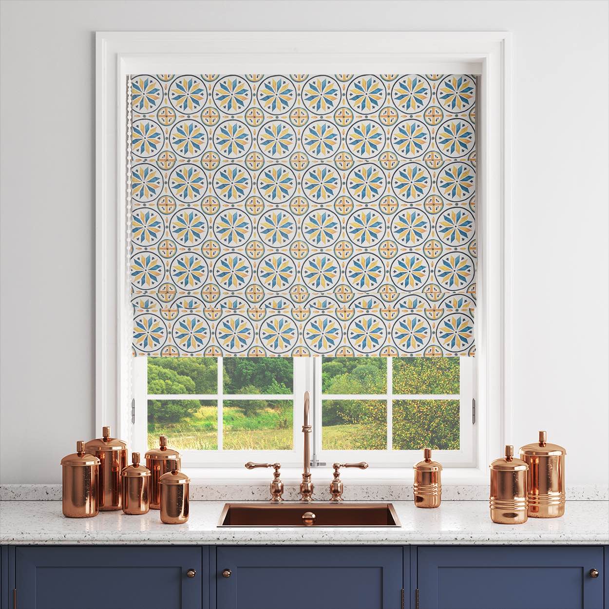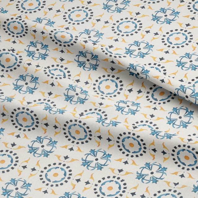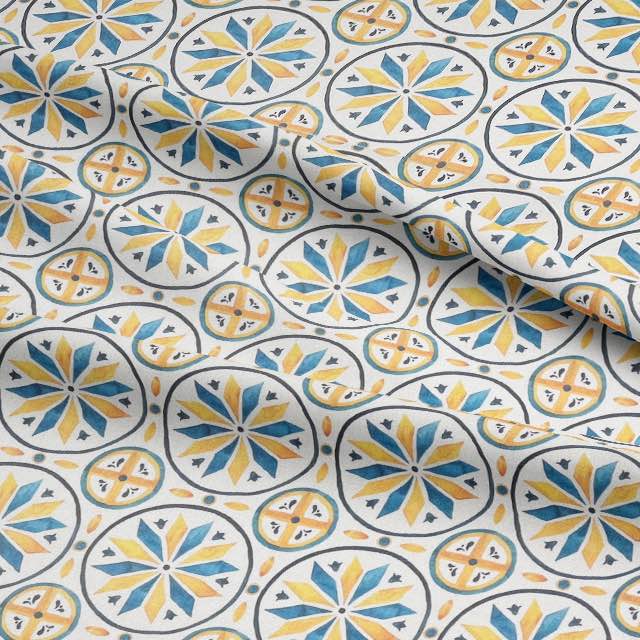 Discover the enchanting allure of the Mykonos Tile Curtain Fabric, exclusively at the-millshop-online. This exquisite collection features 16 Greek-inspired designs that bring the essence of Mediterranean charm to your interiors. Each piece boasts a harmonious blend of blues, yellows, and whites, capturing the iconic beauty of Mykonos island’s architecture. The repeating tile effect adds a touch of timeless elegance, making these geometric fabrics perfect for creating statement curtains that are both stylish and functional. Crafted with precision, our printed curtain fabric offers a texture that exudes luxury and sophistication. Transform your space with this captivating range—ideal for those seeking to infuse their home with a unique geometric flair.