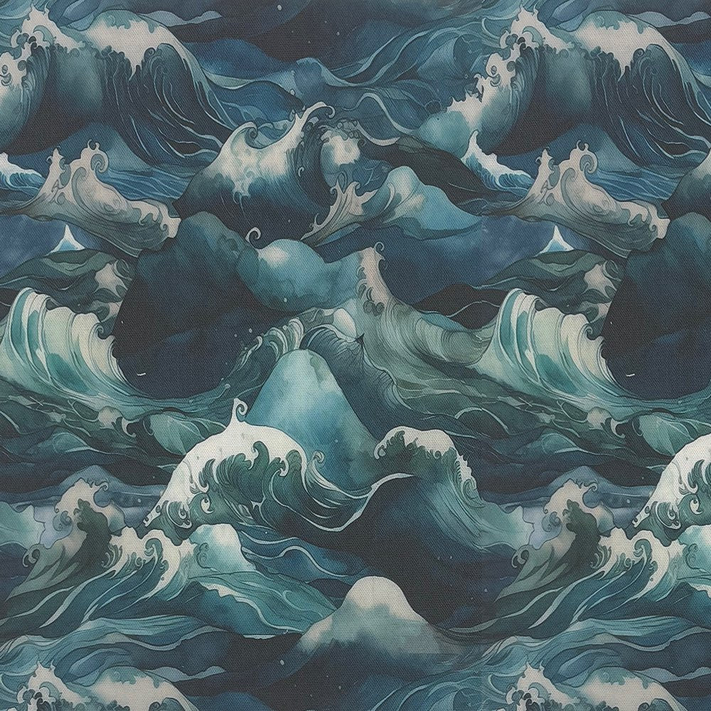Waves Cotton Curtain Fabric in Ink is a showstopping design that brings movement, depth, and drama into any room. Inspired by traditional Japanese wave illustrations and the fluid motion of the sea, this dynamic fabric captures cresting waves in tonal layers of navy, teal, ink blue, and soft seafoam — evoking both energy and tranquillity in one fluid design.