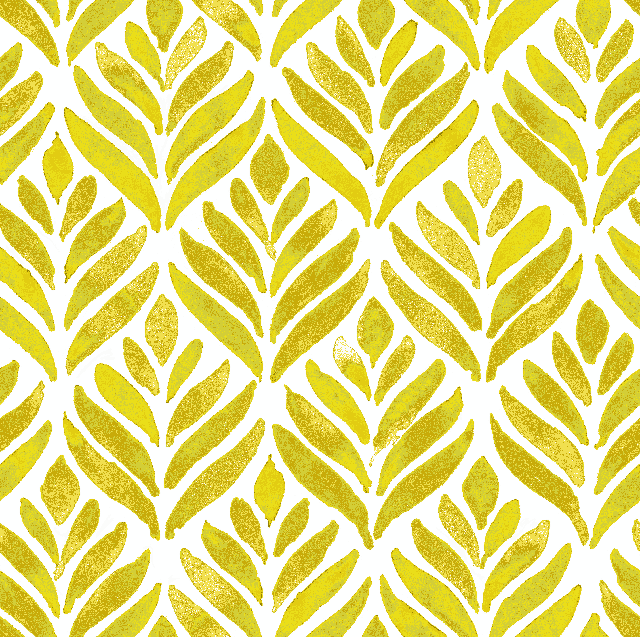 Watercolour Leaves Cotton Curtain Fabric - Ochre