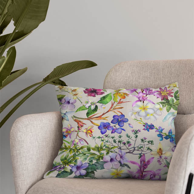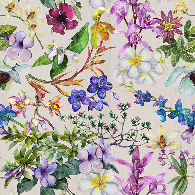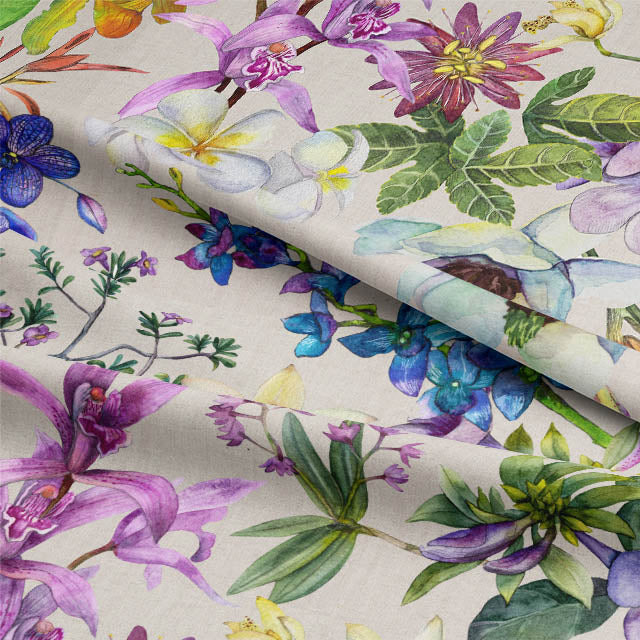 Infuse your living space with the vibrant charm of this exclusive fabric from the designer brand Olivia Florence. This captivating linen material boasts a lively floral pattern, composed of an array of bold hues, exuding a dynamic and spirited energy.