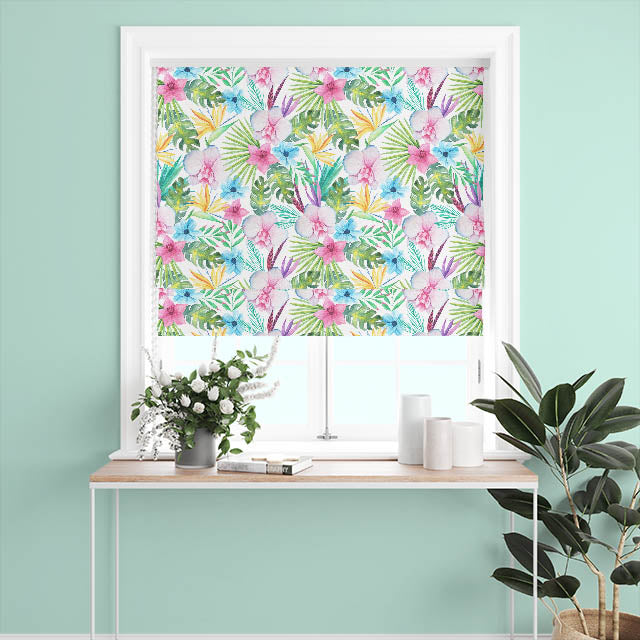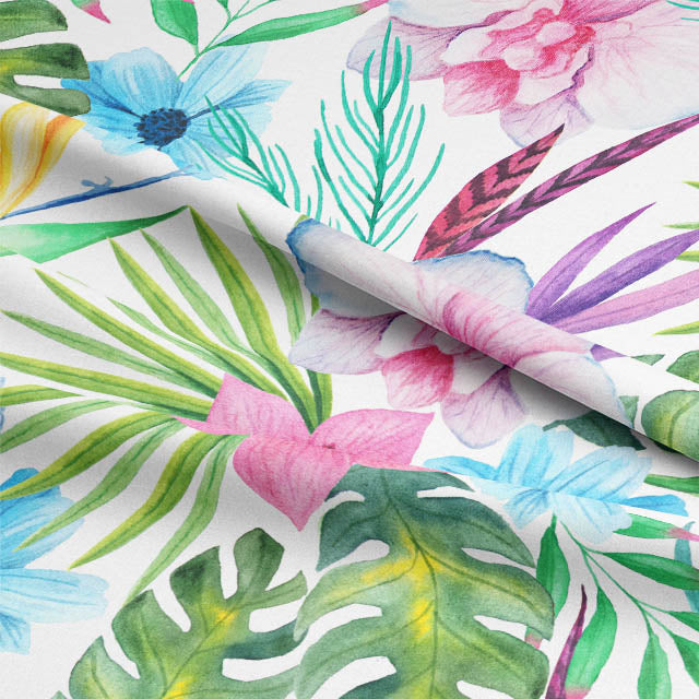 Unveiling our enchanting fabric, skilfully crafted from 100% pure Peruvian cotton. This exquisite material captivates with a delightful pink hue, beautifully contrasted with vibrant blue tropical flower motifs. This charismatic fabric exudes an exotic allure, serving as a fantastic accent to your interior design.