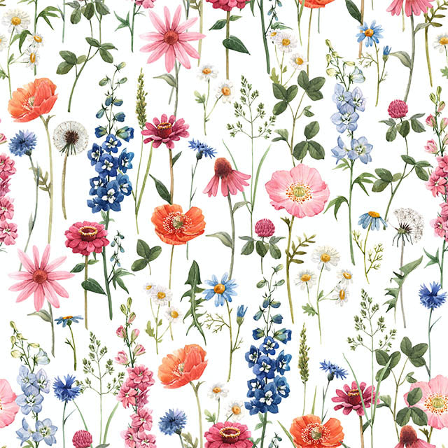 Unveil a vibrant spectacle of colours in your living spaces with our floral printed fabric, boasting a delightful array of various flower types. The vivid hues of the blossoms are beautifully accentuated with a crisp white linen backdrop, infusing a fresh, summery feel wherever used.