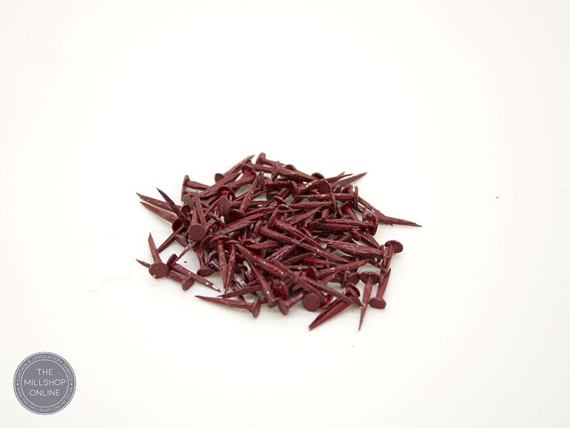 Indulge in the simple pleasure of personalizing your furniture with our selection of upholstery tacks. This pack contains approximately 150 tacks, each measuring about 15mm. With their striking red hue, these tacks add a subtle pop of colour while offering a practical way to affix braids and fringes to your upholstered items.