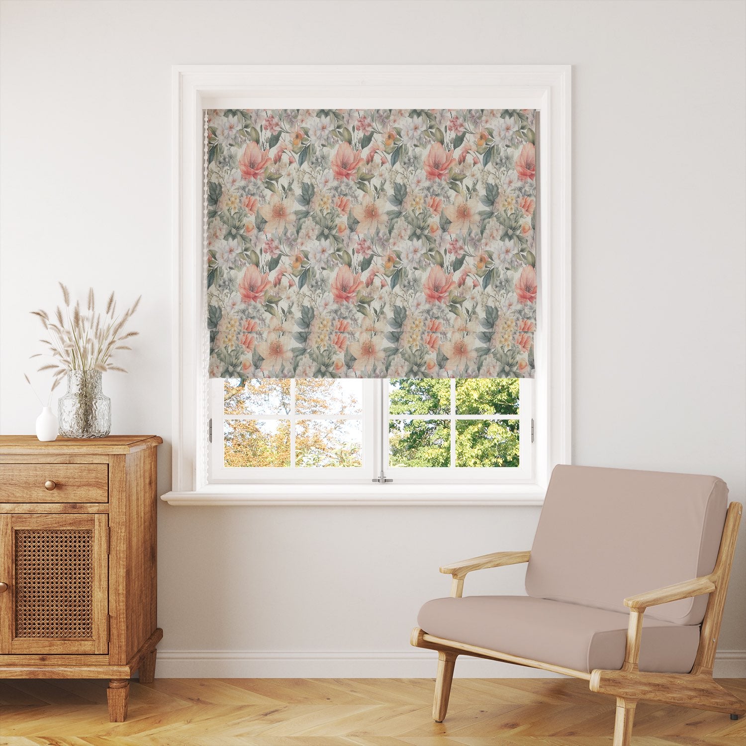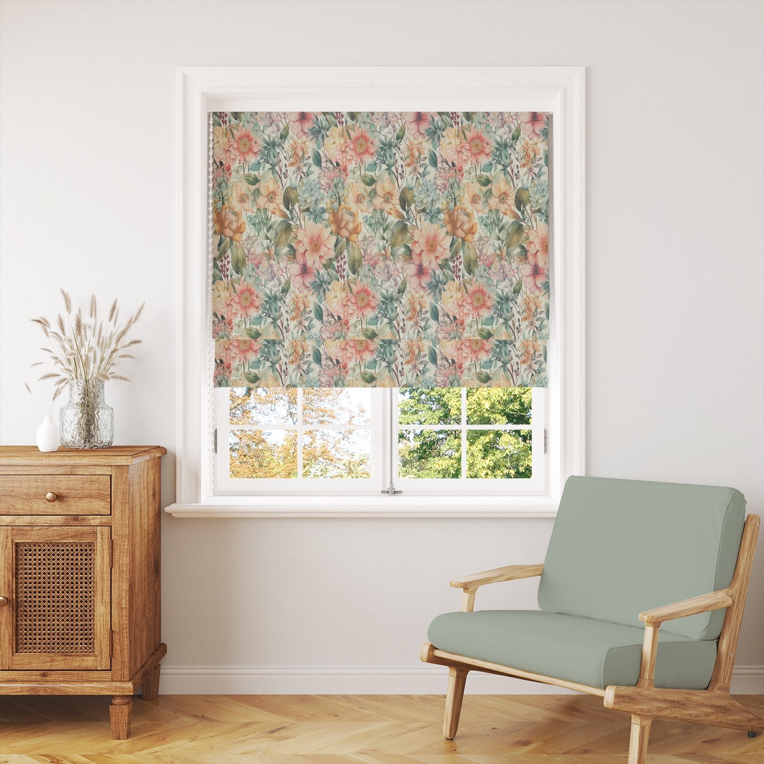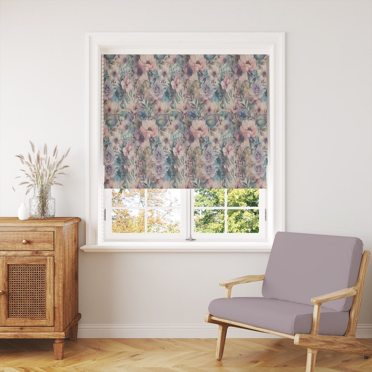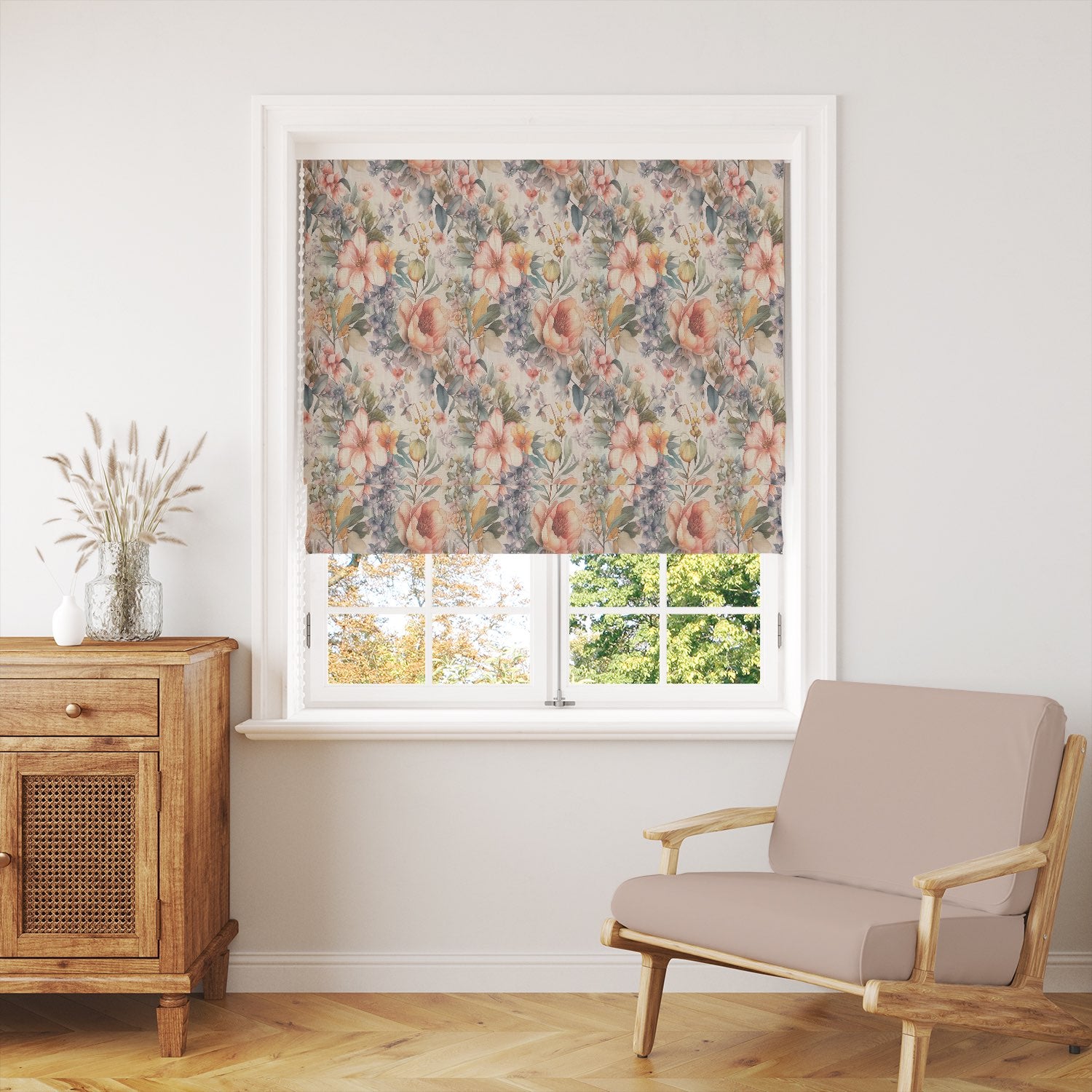 Printed on a high-quality linen union basecloth, this fabric combines the natural texture of linen with durability, making it ideal for curtains, Roman blinds, and even decorative cushions. The rich botanical detail captures wildflowers, roses, and meadow blooms in soft watercolour tones, creating a sophisticated yet inviting look for both modern and classic interiors.
