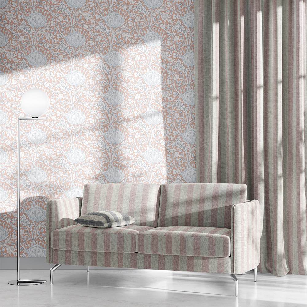 Our stripe upholstery fabric comes in a choice of 8 meticulously chosen colours - Blush, Cloud, Denim, Ochre, Plum, Putty, Rouge, and Slate. These versatile hues, each one carefully picked, add a level of refinement and elegance to your interior decor.