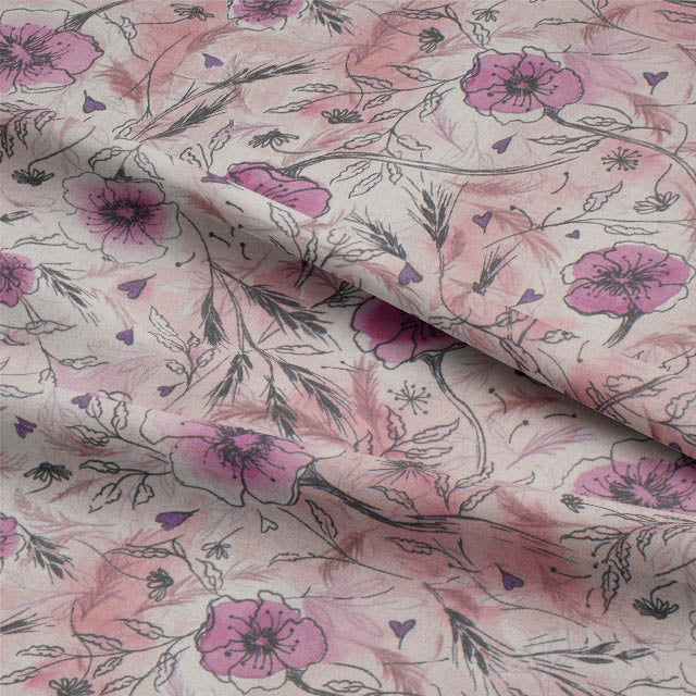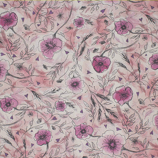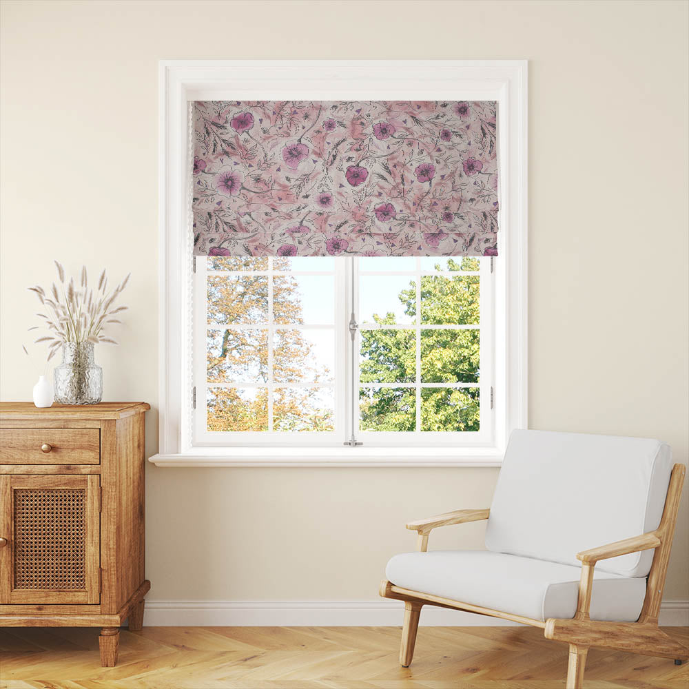 Wild Poppies Linen Curtain Fabric - Pink Sherbert